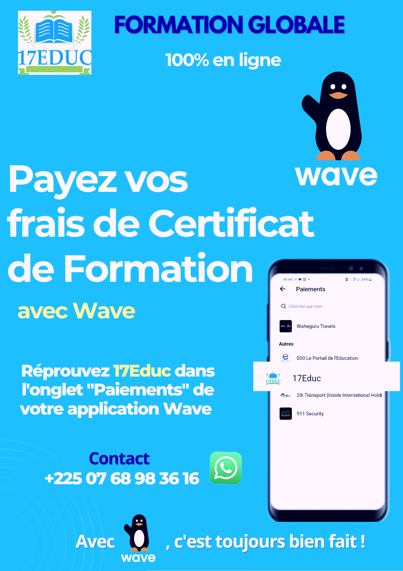 Retrouvez aussi 17EDUC dans l’onglet "Paiements", dans votre application Wave